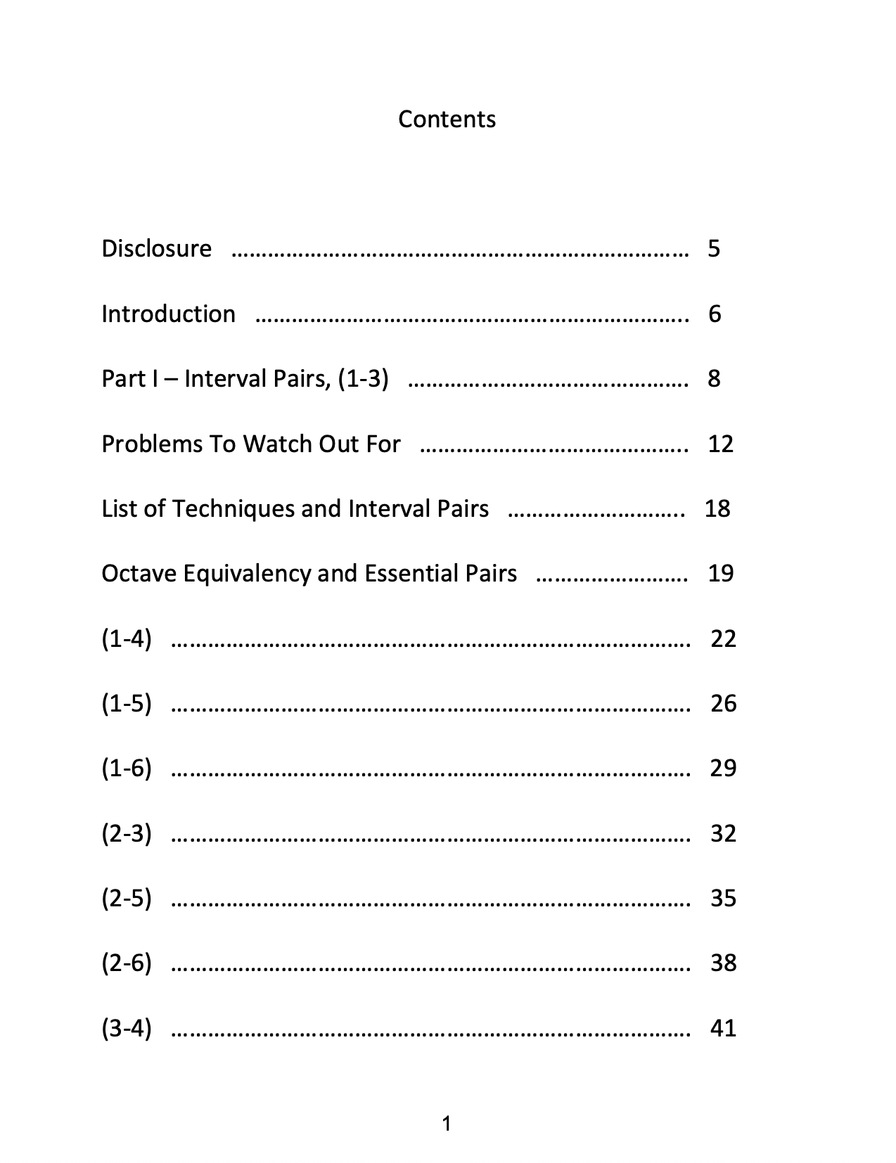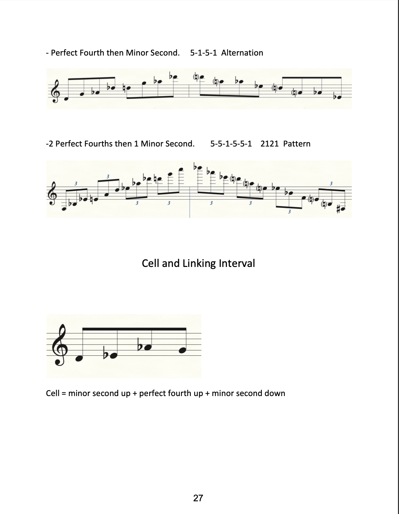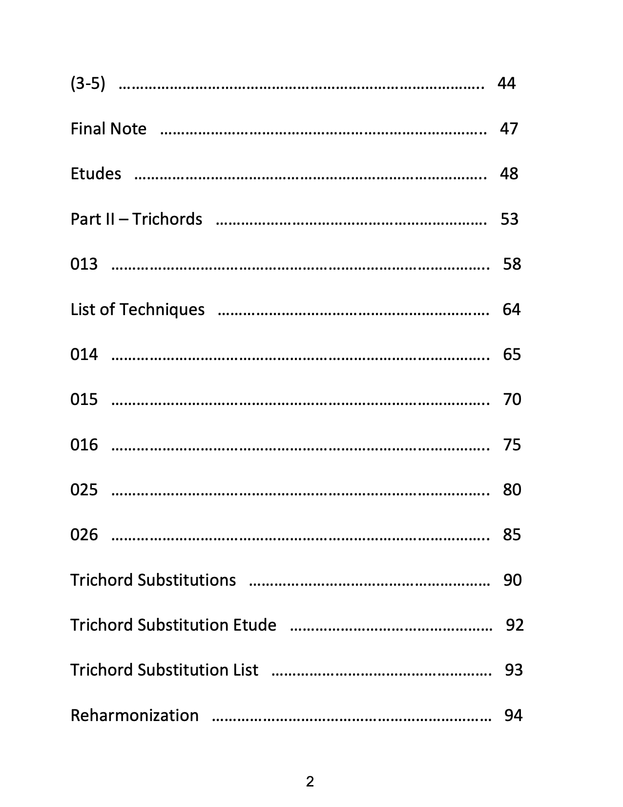 This book has two parts, part I "Interval Pairs", is a study of using 2 intervals at a time, exploring patterns, cells, and ii V I lines. Part II "Trichords", is a study of the Atonal version of Triads called Trichords. Trichords are built with 3 pitches and 3 intervals just like triads, and have many different techniques to explore.